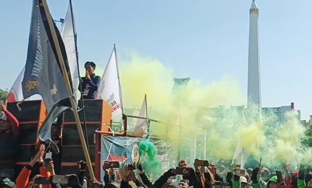 Surabaya — Komunitas Pergerakan Arek Suroboyo (KOMPAS) menggelar aksi unjuk rasa di depan kantor Perusahaan Daerah Air Minum (PDAM) Surya...